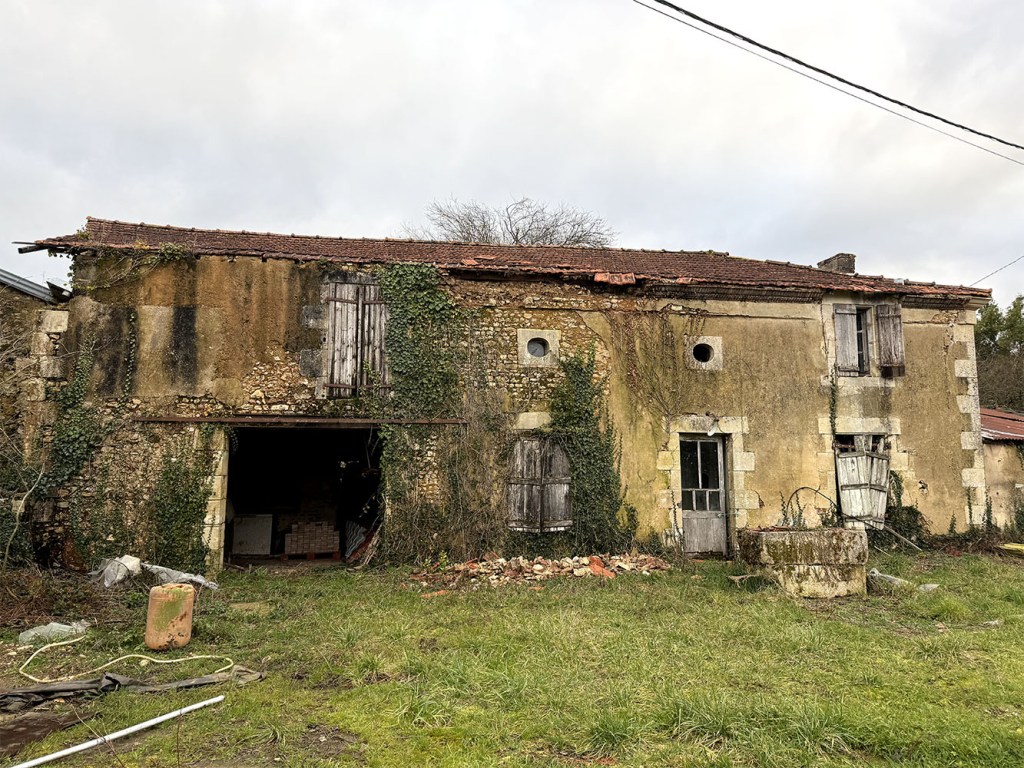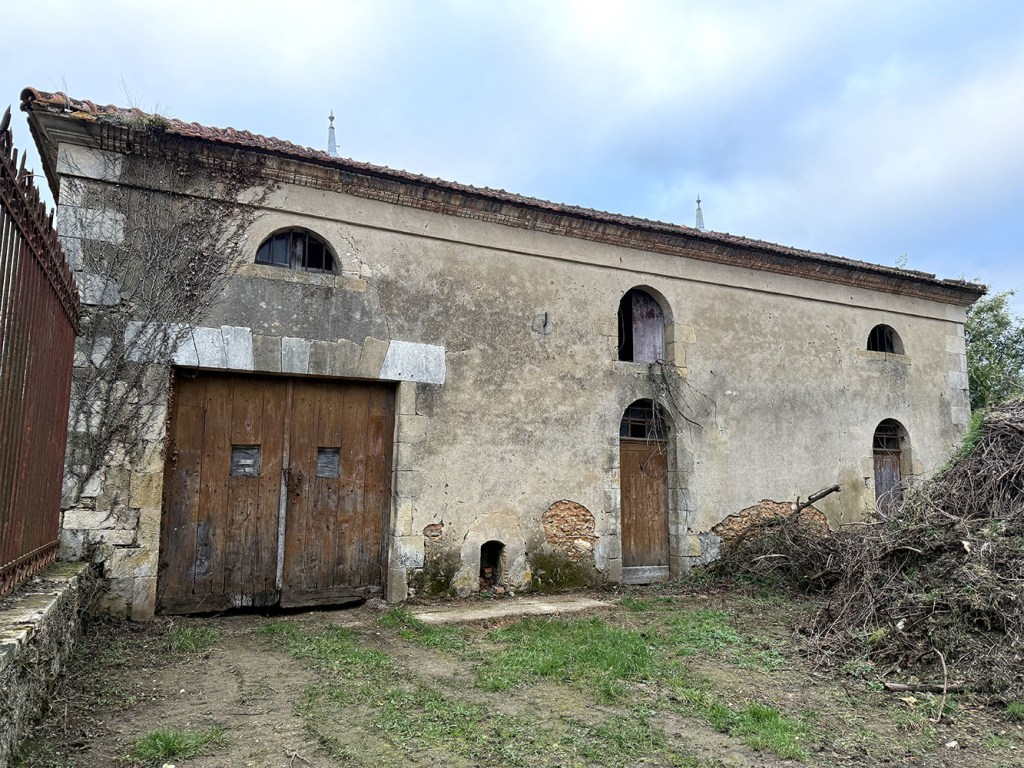 Une des deux tourelles poivrière est restaurée; toitures des deux écuries à faire avec une en atelier et l’autre prochainement une salle de réception; la maison de ferme avec toiture à faire et tout à réaliser aussi (électricité, plomberie, isolations…) qui sera un gite.